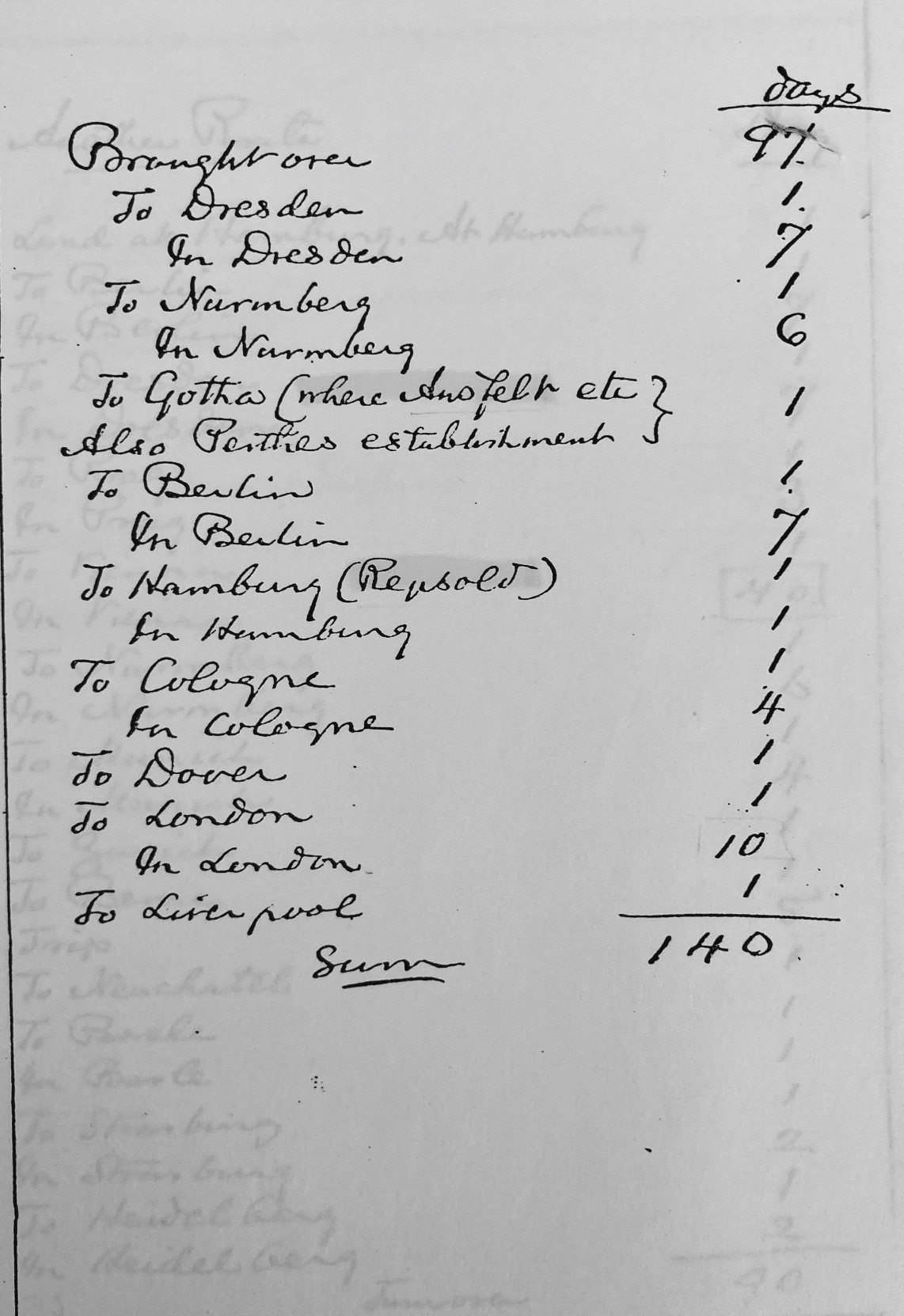 Además, otro de los objetivos del viaje parece ser la visita a científicos y a fabricantes de instrumentos científicos. En el itinerario son identificados expresamente Plantamour en Ginebra, Hipp en Berna, Merz y Steinheil en Münich, Ausfelt y la editorial Justus Perthes en Gotha y los Repsold en Hamburgo.