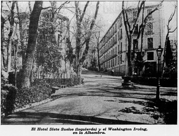 Sabemos que en Granada Charles S. Peirce se aloja en la fonda Siete Suelos, adosada a La Alhambra. Conocemos esto porque, cuando el 29 de noviembre escribe a Joseph Winlock, que va a dirigir al equipo de observadores que se situará en España, Peirce le recomienda que no deje de visitar Granada, pero que se aloje en otro hotel, concretamente en el Washington Irving, que se encontraba justo enfrente (Cfr. "El Hotel Siete Suelos", Granada Ayer). Puede leerse la simpática descripción de este alojamiento publicada en La Época (Madrid), 1 de abril de 1867, p. 3.