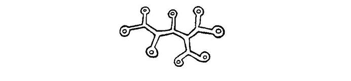 Si vemos la figura, donde he trazado los términos como caminos que retornan sobre sí mismos, para no introducir nada más que el camino mismo. De ese modo los tres elementos esenciales de una red de caminos son camino con relación a un término, conexiones de caminos y ramificaciones; de la misma manera las tres categorías fundamentales del hecho son: hecho acerca de un objeto, hecho acerca de dos objetos (relación), hecho acerca de varios objetos (hecho sintético).