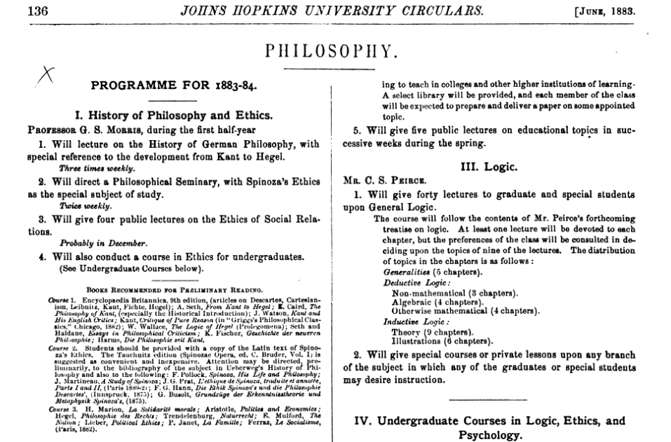 Lógica C. S. Peirce Mayo 1883 Programa para 83/84 |