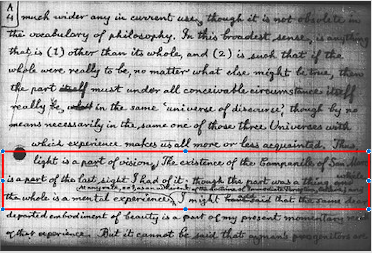 En el MS 204, del 24 de mayo de 1908, Peirce mencionará también el Campanile destruido seis años antes pero que conserva en su memoria. Agradecemos a Jérôme Havenel esta referencia. He aquí la transcripción y las imágenes de las dos referencias: "The existence of the Campanile of San Marco is a part of the last sight I had of it; though the part was a thing ... the whole is a mental experience".