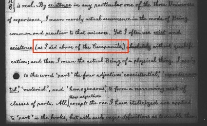 "El primer error es que, si se le preguntara a un hombre qué provocó la caída del campanario en Venecia, fuera a responder que la regularidad de la naturaleza. Esa es una confusión tolerablemente común, la confusión del decreto de una Corte con el fuerte brazo derecho del alguacil. Pero, llamarlos sensación después de haberlos identificado es, creo, un error peculiar de los filósofos. Es algo así como confundir un hombre vivo con la idea general de hombre [man] y, habiéndolo hecho, decir que estaba construido con dos consonantes nasales y una vocal". [Fuente: C. S. Peirce, "¿Qué hace sólido un razonamiento" (1903)].