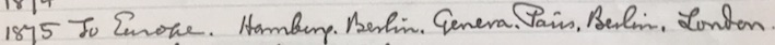 - Otros documentos: Pasaporte, Congreso de París, con Henry James, Biblioteca Nacional de París, Athenaeum, Brevoort House, Informe oficial, Verhandlungen der von 20. bis 29. september 1876 [i. e. 1875] in Paris