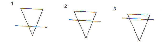 Supongamos que las líneas simbolizan la viveza de cada cognición y que cada línea determina la siguiente según se va sumergiendo: cuanto más larga es la línea, más viva es la cognición del objeto. Lo que se encuentra es que es imposible encontrar dos líneas entre las cuales no se puedan trazar más líneas. Es decir, que el conocimiento se auto-funda y, por así decirlo, no hay un primer conocimiento que no venga mediado por otros. Nunca se alcanza lo incognoscible. Ciertamente, se podría argumentar que el vértice es lo incognoscible no-mediado. Pero el vértice es un punto, no una línea, y vendría a ser no una cognición sino el objeto mismo –que está fuera de la conciencia, en la realidad– al que se refieren las cogniciones. En el momento en que se mete el triángulo en el agua, ya aparecen las líneas. Es decir, que en el momento en que hay conocimiento, ya hay sucesión de cogniciones (CP 5.263, 1868).