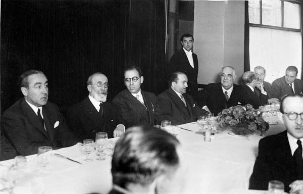 10. 18-III-1950, Homenaje a Antonio Tovar a su regreso de Argentina. De izquierda a derecha: José María de Areilza y Martínez de Rodas, Ramón Menéndez Pidal, Antonio Tovar Llorente, Jesús Rubio García-Mina, Eugenio d’Ors. [ver más] |