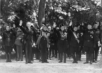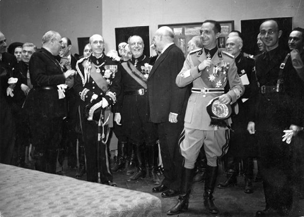 5. En primer plano, de izquierda a derecha: Giuseppe Bottai, Duque Ferdinando di Savoia-Genova, Eugenio d’Ors, Ulrich von Hassel, Mariscal Ugo Cavallero.